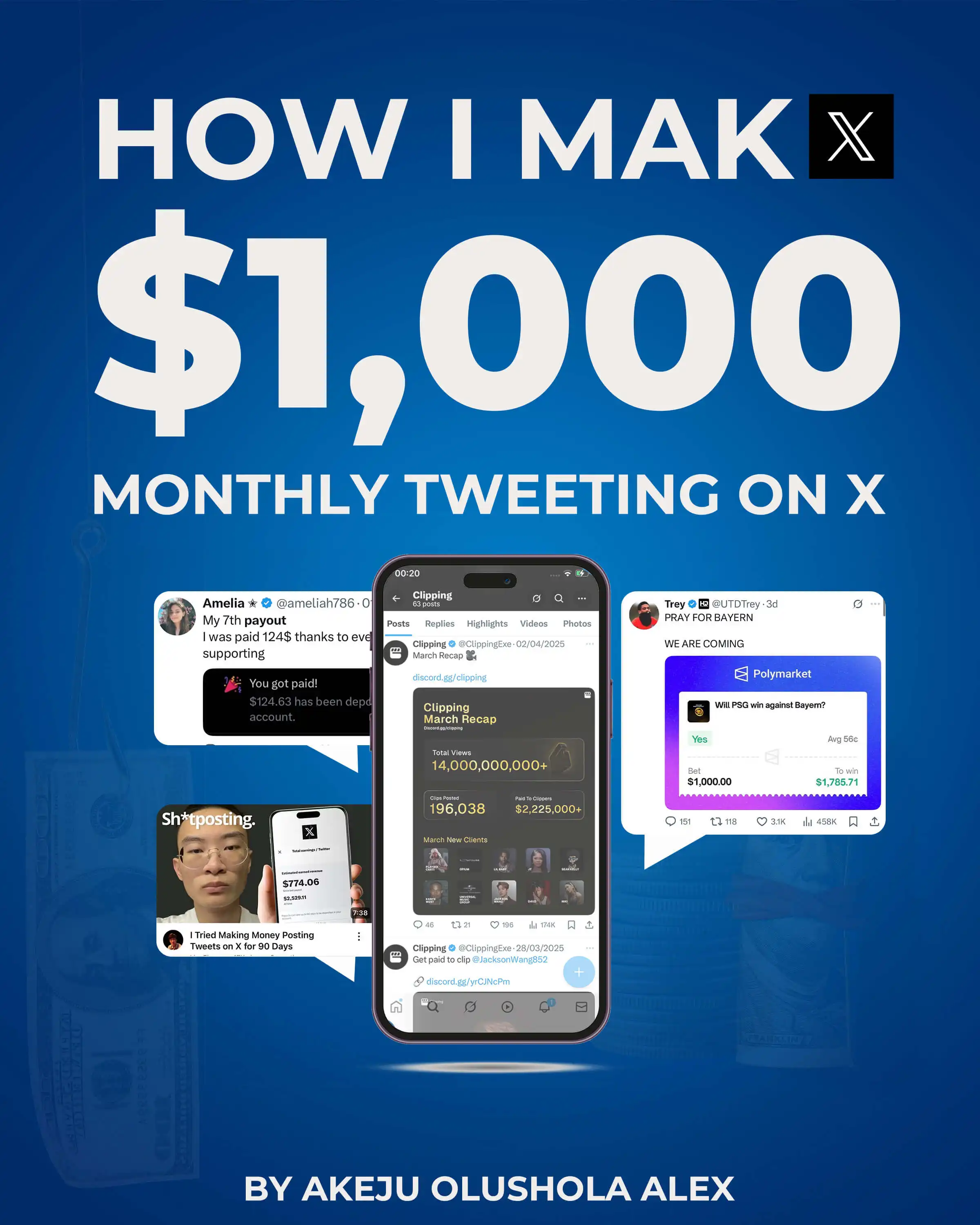 In this book, I take you behind the scenes of how I went from just tweeting for fun to earning $1000 every single month using nothing but my phone, my brain, and a platform we all use: X (formerly Twitter).